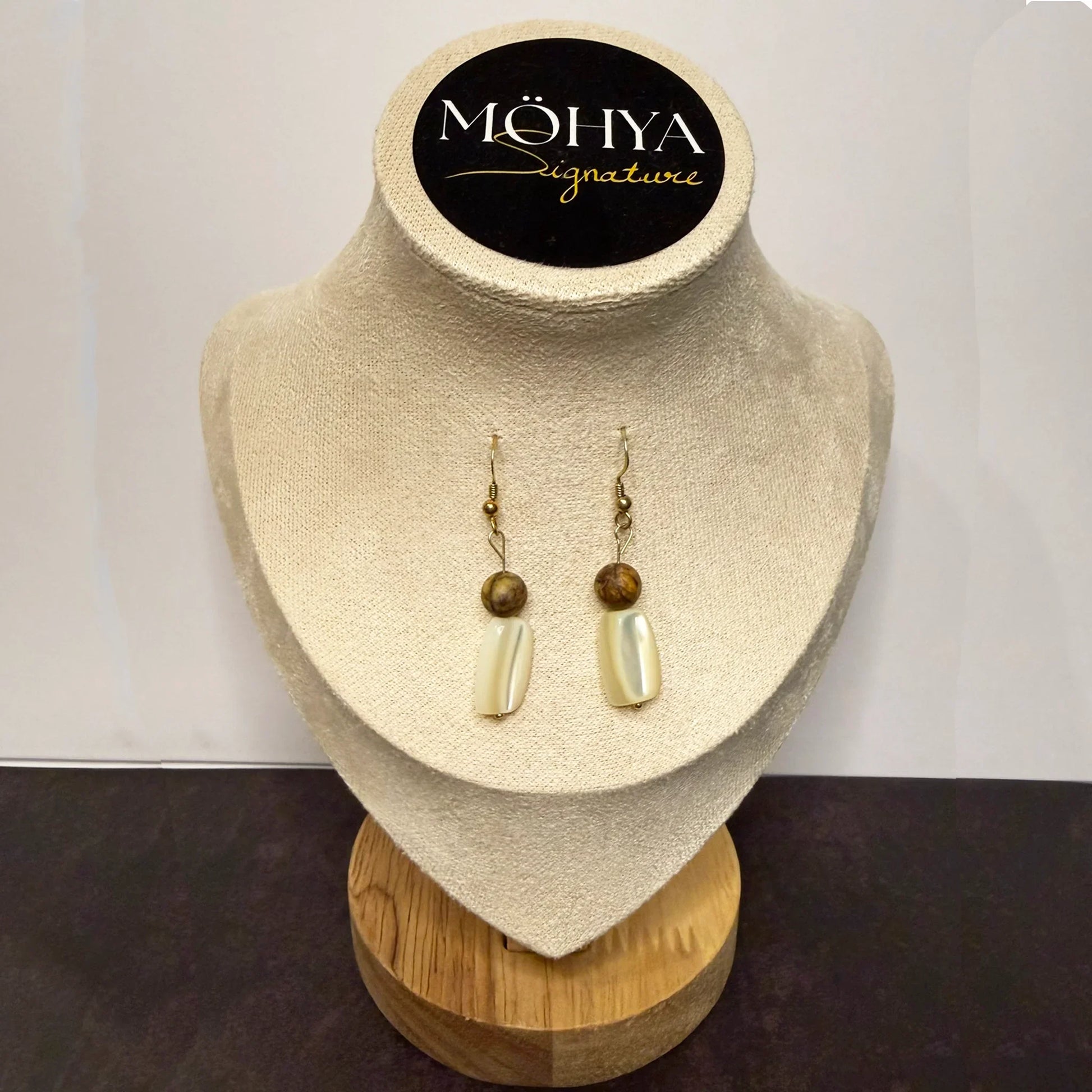Brincos Jaspe Picasso e Madrepérola MÖHYA Signature